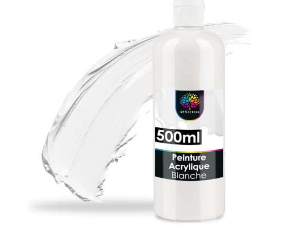 Vopsea acrilică albă OfficeTree, pe bază de apă, sticle de 500 ml, nedesfăcute / sigilate.