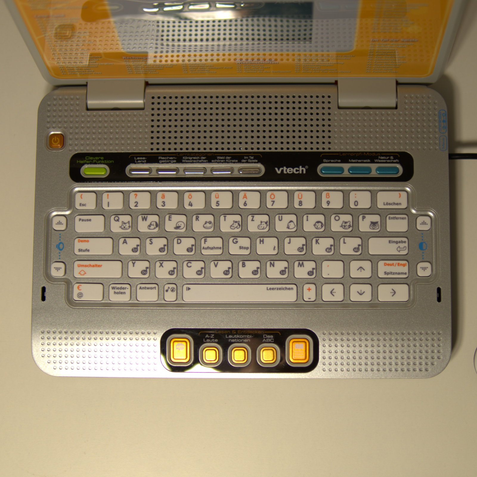 Tastatură colorată și design prietenos pentru copii.