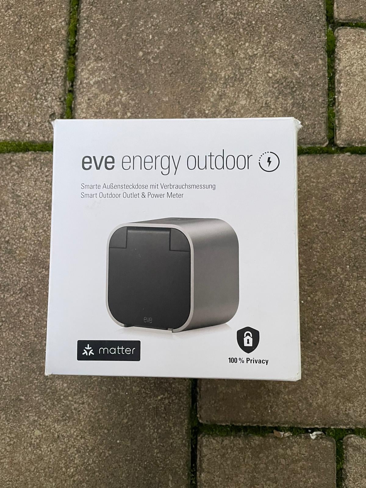 Vând Eve Energy Outdoor (Matter) – priză inteligentă de exterior, cu protecție IP44 și funcție de măsurare a consumului de energie.